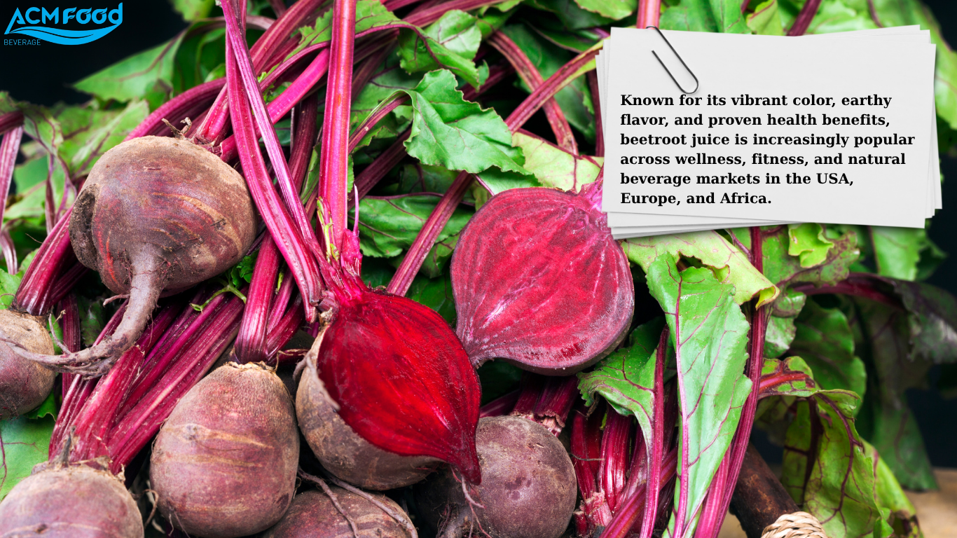 At ACMFOOD, we proudly offer private label and OEM manufacturing for an expanding array of NFC (Not From Concentrate) juices. Among these is one of today’s most sought-after superfoods: Beetroot Juice. This vibrant beverage, known for its distinct color, earthy flavor, and proven health benefits, is gaining significant traction across wellness, fitness, and natural beverage markets throughout the USA, Europe, and Africa.