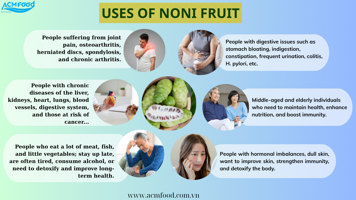 Noni fruit, with its rich nutritional content, has become one of the most popular health supplements in the world. Since ancient times, noni has been known as a natural elixir with many health benefits, especially boosting the immune system and fighting inflammation.