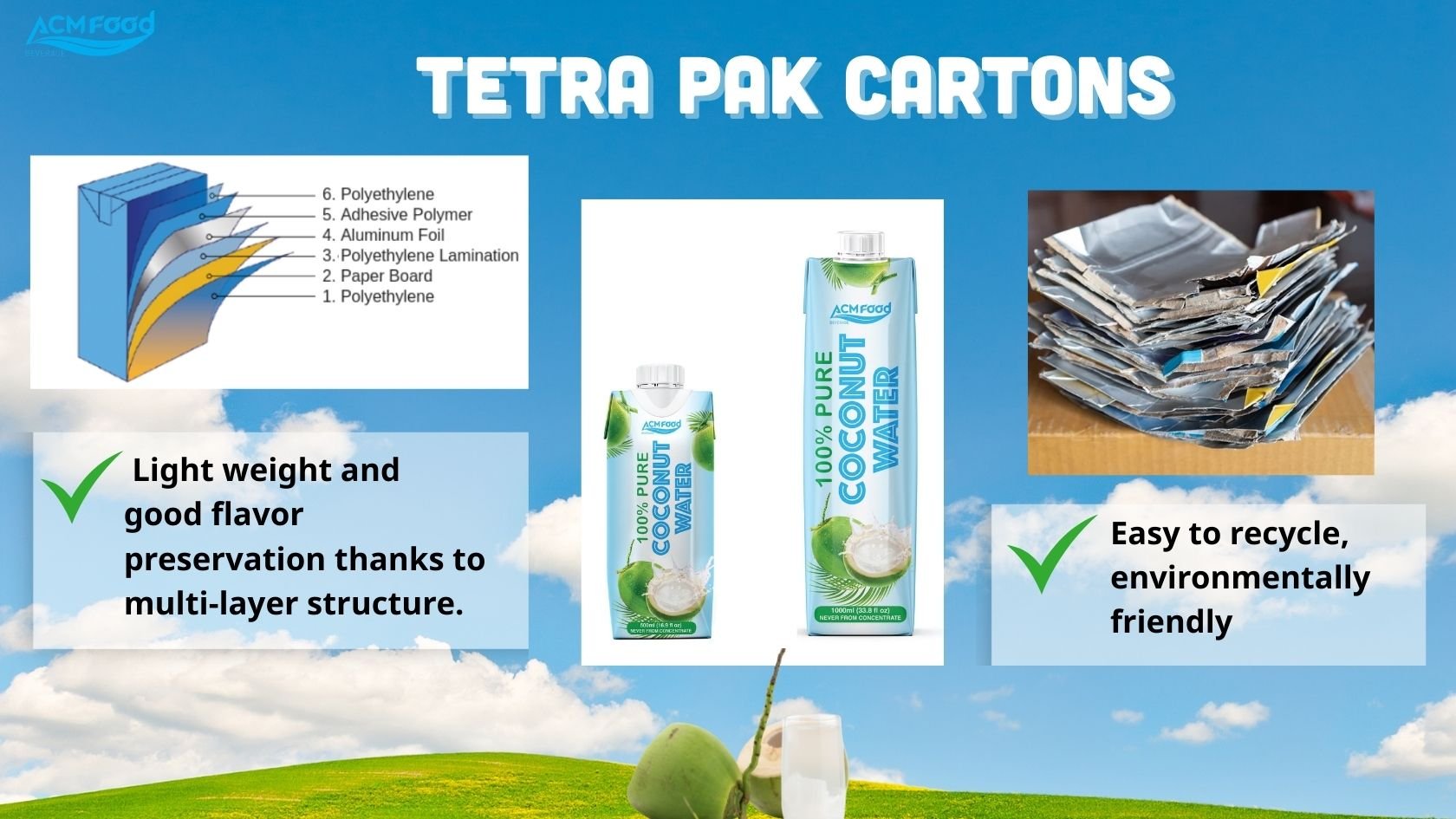 Tetra Pak cartons are a complex, multi-layered packaging solution (paperboard, aluminum, and polyethylene), combining UHT sterilization and aseptic filling technology. This structure provides excellent light protection and helps maintain the natural flavor of the coconut water.