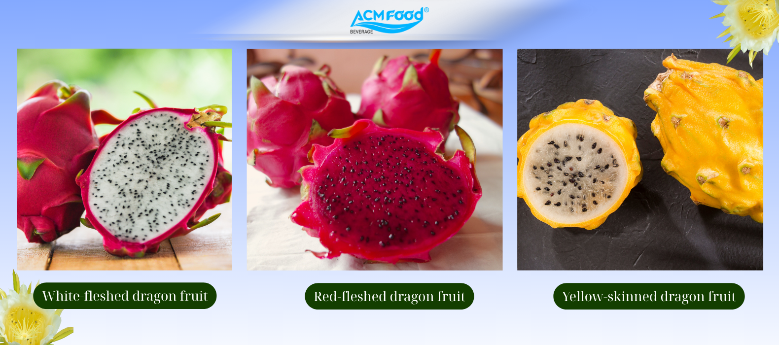 In addition, there is now a yellow-skinned dragon fruit variety – a unique hybrid variation, featuring a golden skin and white flesh, with a sweeter taste than traditional varieties.