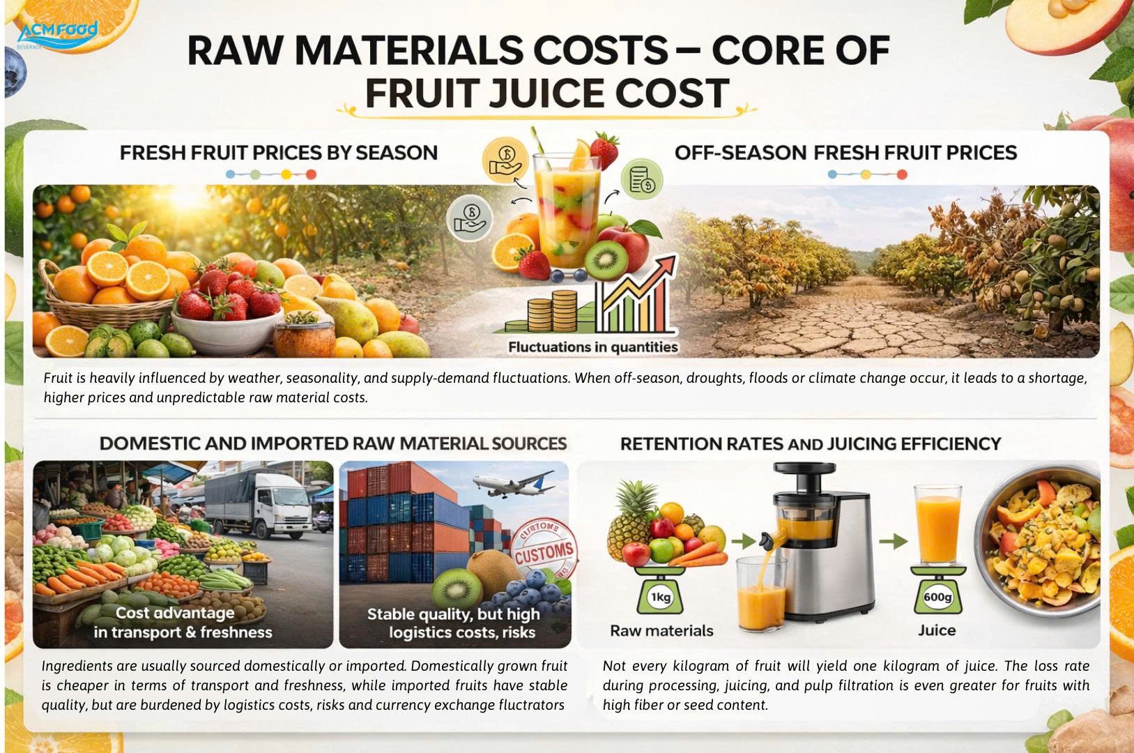 First, fresh fruit prices fluctuate with seasonality and climate conditions. Droughts, heavy rainfall, or poor harvests can increase raw material costs in a short period.