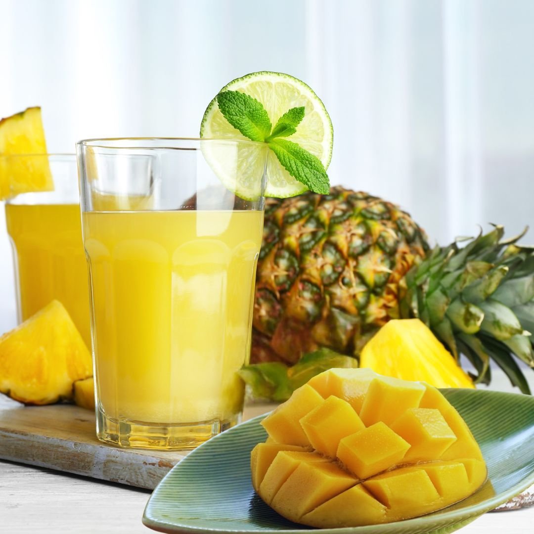 Pineapple contains bromelain, an enzyme that supports digestion and reduces inflammation. When paired with mango — rich in vitamin E and antioxidants — it helps detoxify the body, boost metabolism, and gently support weight management.
