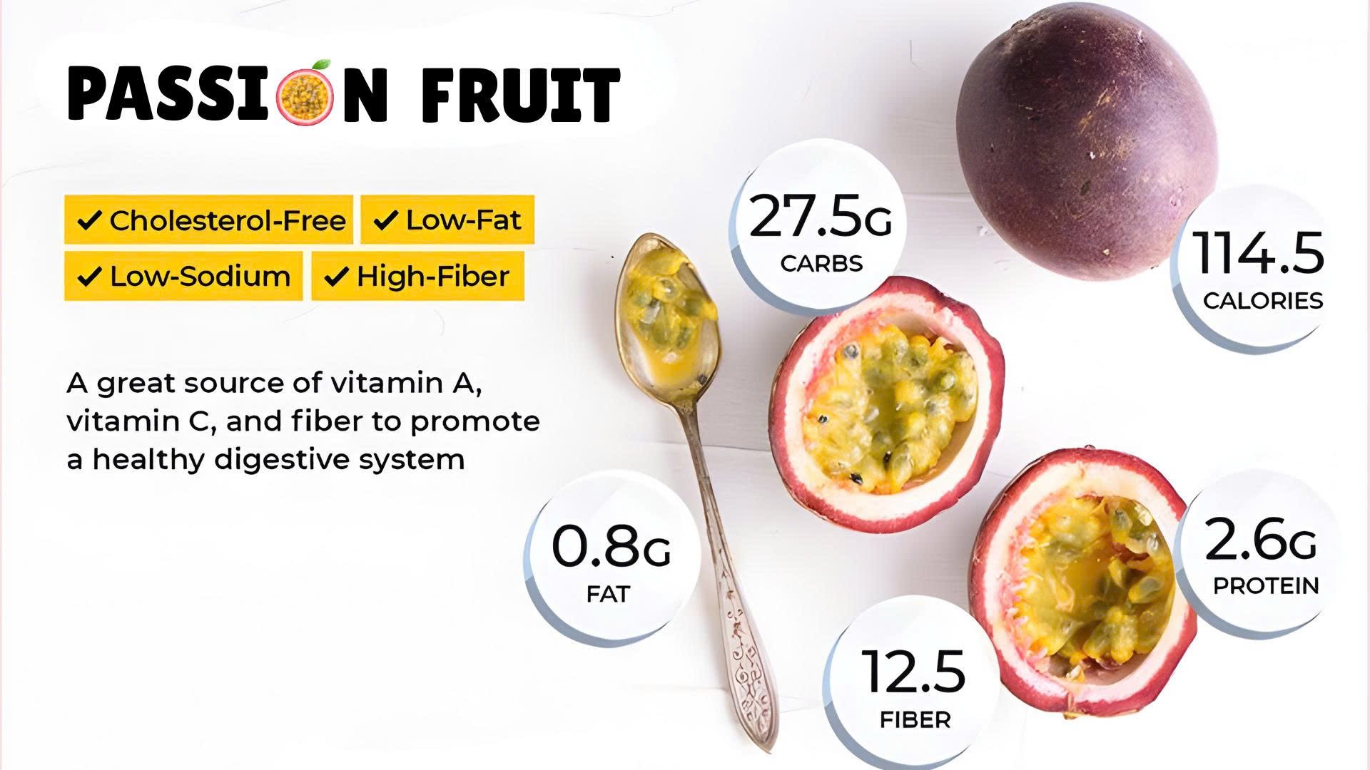 From a nutritional standpoint, passion fruit is highly valued for its high nutrient content relative to its low calorie count. One passion fruit contains: