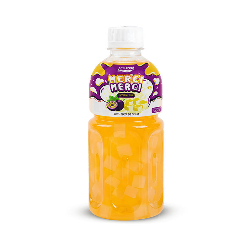 ACM Merci Merci Passion Juice with Nata de Coco is packed in a 320ml PET bottle designed for portability and everyday convenience. The compact bottle supports portion control while remaining easy to carry, store, and display.