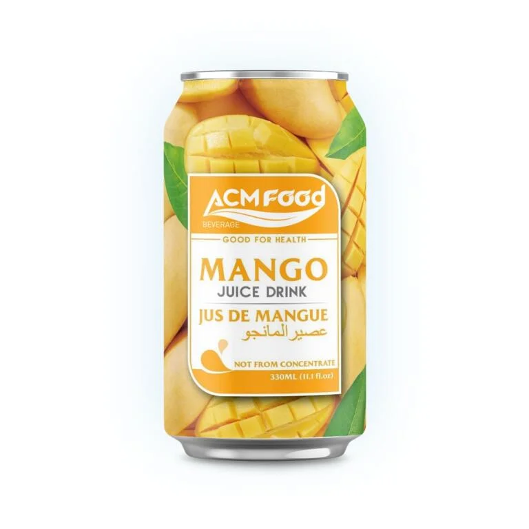 ACM Mango Juice NFC is produced using not-from-concentrate mango juice to deliver an authentic tropical flavor with natural sweetness and smooth mouthfeel. Moreover, the 330ml aluminum can format supports efficient export distribution and strong shelf visibility. As a professional mango juice manufacturer, ACM provides full OEM/ODM services, flexible sugar levels, and regulatory support for private label juice brands and global distributors.