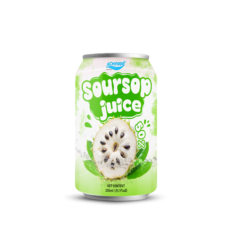 The journey of 330ml Soursop Juice begins with ripe soursop fruits, carefully harvested from specialized growing regions. We use 50% pure soursop juice, preserving the natural flavor and nutritional value of the fruit in every can.