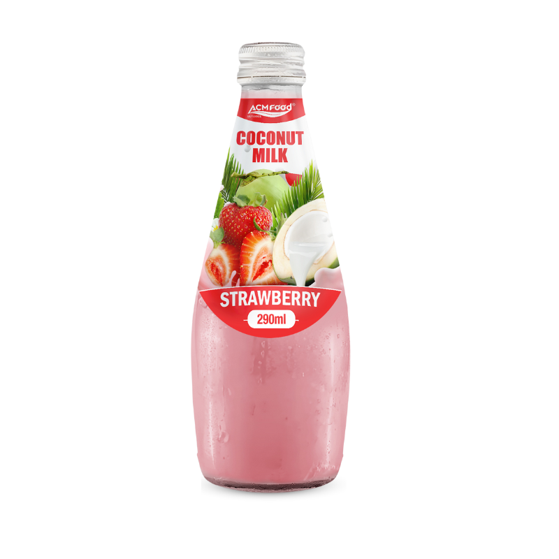 ACM 290ml glass botlle Coconut milk drink with Strawberry flavored (with and without nata de coco)