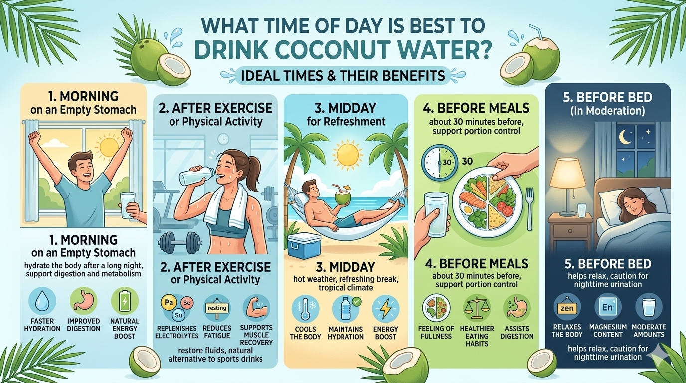 The truth is that coconut water can be enjoyed at different times depending on your lifestyle and health goals. Drinking it at the right time may help maximize its natural benefits.
