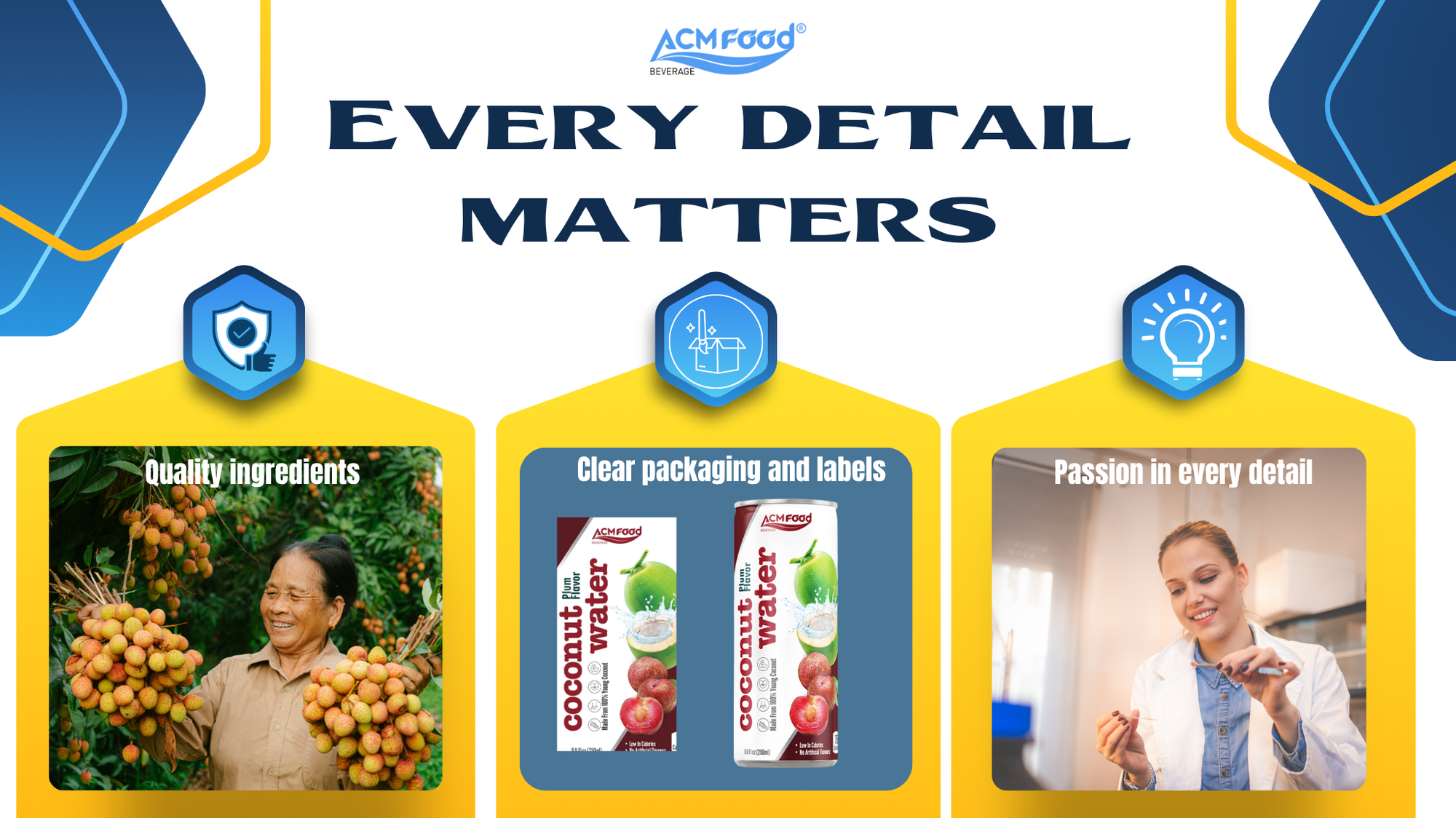 - Confirming Quality: Customers can check flavor, packaging, labeling, can/bottle durability, and food safety standards. A standard-compliant test sample helps customers feel secure in placing bulk orders.